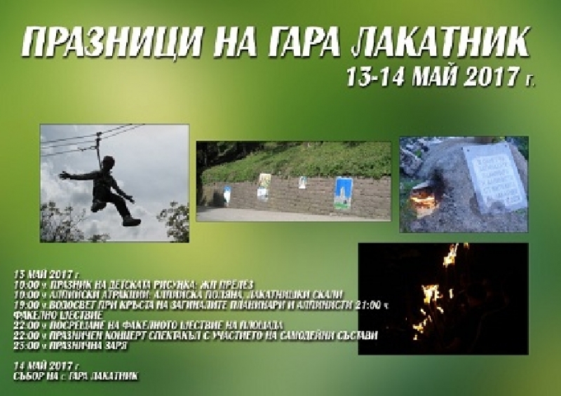 Традиционните празници на Гара Лакатник предстоят този уикенд. Те ще започнат в събота – 13 май, като програмата ще бъде открита с Празник на детската рисунка в 10.00 ч. Малчугани ще рисуват цветни картини върху платната при ЖП прелеза. По същото време момчетата от ПСС-Лакатник и техни приятели ще направят алпийски тролей на Лакатнишките скали. Той ще бъде близо сто метра и ще се спуска от Идеалния ръб на Черната стена до заслона на Алпийска поляна. По него до 17.00 ч. адреналина си ще могат да качат всички смелчаци над 18-годишна възраст.