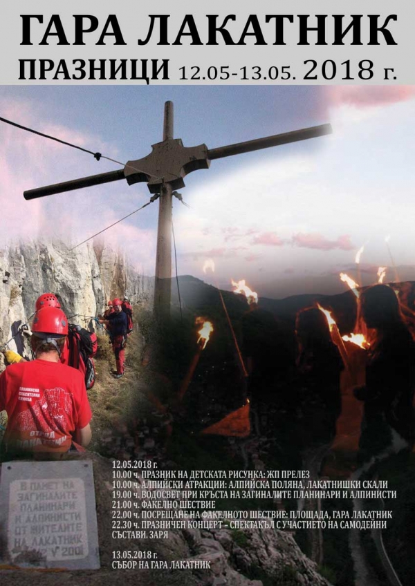 Традиционните празници на Гара Лакатник предстоят този уикенд. Те ще започнат в събота – 12 май, като програмата ще бъде открита с Празник на детската рисунка в 10.00 ч. Малчугани ще рисуват цветни картини върху платната при ЖП прелеза. По същото време момчетата от ПСС-Лакатник и техни приятели ще направят алпийски тролей на Лакатнишките скали. Той ще бъде близо сто метра и ще се спуска от Идеалния ръб на Черната стена до заслона на Алпийска поляна. По него до 17.00 ч. адреналина си ще могат да качат всички смелчаци над 18-годишна възраст.