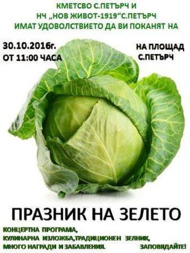 На 30-ти октомври, село Петърч за пореден път ще бъде домакин на станалия вече традиционен ''Празник на зелето'', организиран от кметството на селото и НЧ "Нов живот-1919" село Петърч. Тържеството ще започне в 11:00 часа, на площада на селото, където всички жители и гости на Петърч, ще могат да наблюдават и да участват в различни конкурси: конкурс за най-голяма зелка, за най-дълъг зелник, за най-атрактивни ястия от зеле, конкурс по рязане на зеле за салата, конкурс за ядене на зелева салата и др. За доброто настроение, организаторите на кулинарния празник са предвидили богата фолклорна програма, забавни атракции, много награди и забавления.
