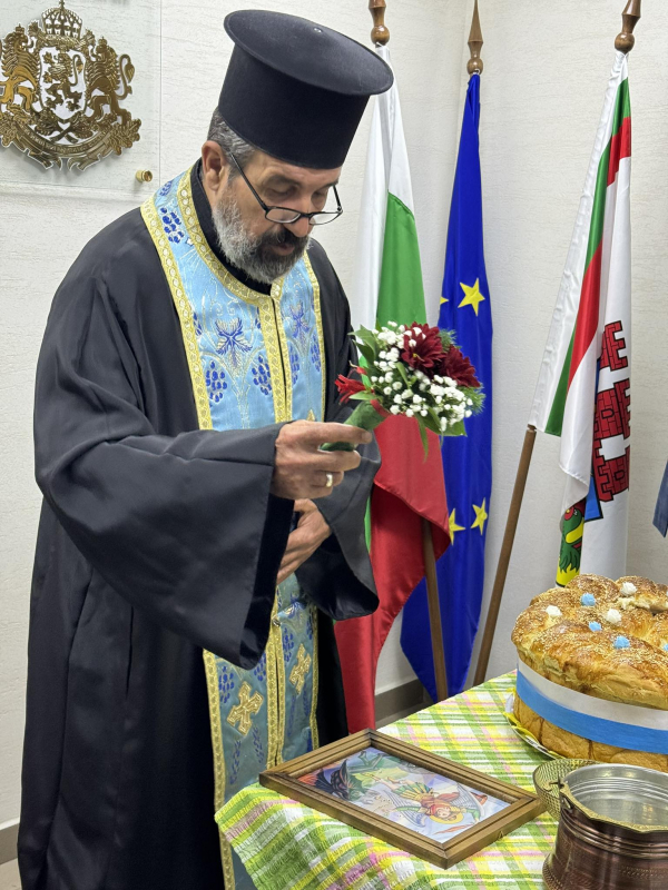В сградата на администрацията Отец Николай отслужи водосвет за успех в работата на новия кмет и общинската администрация-Костинброд. Инж. Теодора Гогова – ВрИД кмет на община Костинброд благодари на всички служители на администрацията за работата през последния месец. Инж. Гогова пожела успешен трети мандат на Трайко Младенов и ползотворна работа.