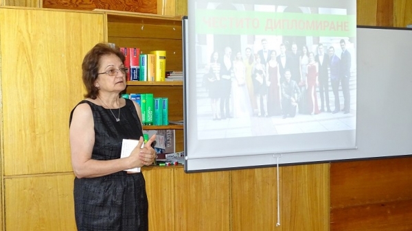 Своето голямо вълнение в този тържествен момент не скри и класната ръководителка на Випуск 2019 – Алина Маринова, която припомни мъдри послания на писателя Ерих Кестнер, отправени към младите хора.