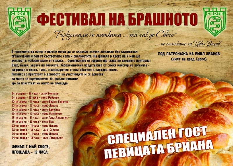 На 9 април стартира Фестивал на брашното в Своге под патронажа на кмета г-н Емил Иванов - една оригинална идея, нещо ново, което ще се осъществи за първи път на територията на цялата община.