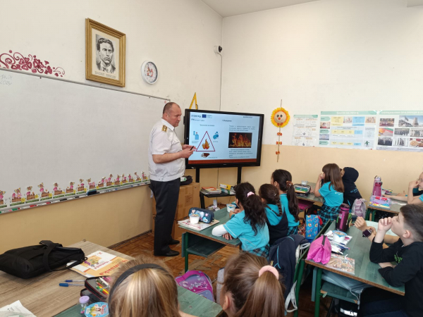 По време на обучителното занятие децата научиха как да реагират при земетресение, пожар и наводнение. Наред с това те получиха полезна информация за начините на действие в извънредни ситуации и безопасно поведение при бедствия.