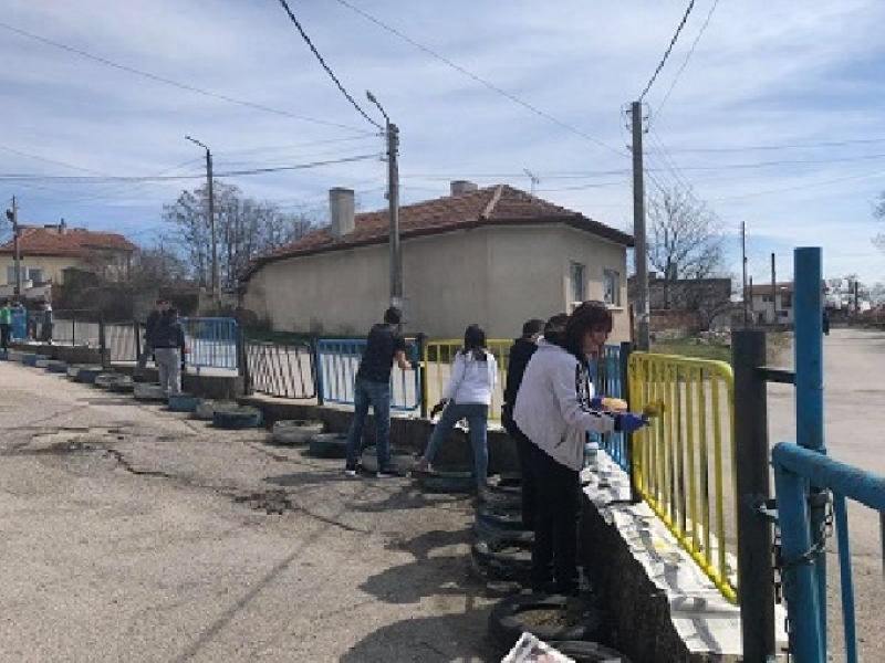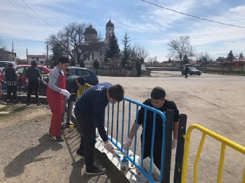 Ученици и учители от Първо ОУ ”Васил Левски” боядисаха оградата на училището си