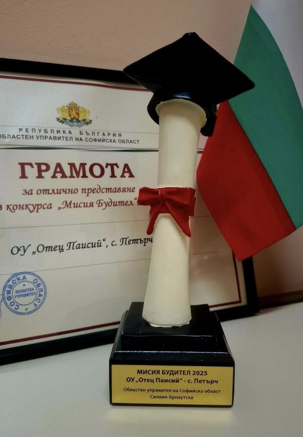 Награда „Мисия Будител“ за училище: ОУ „Отец Паисий“, с. Петърч.