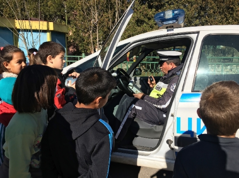 Първото практическо занимание на тема: „Полицаи и пътни полицаи” на учениците от „Детско полицейско управление“ при НУ „Христо Ботев” е факт.