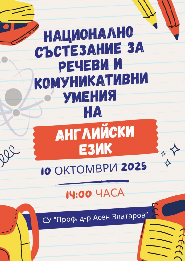 За първи път в СУ „Проф. д-р Асен Златаров“ (Годеч) ще се проведе Национално състезание за речеви и комуникативни умения на английски език за учебната 2025-2026 година.
