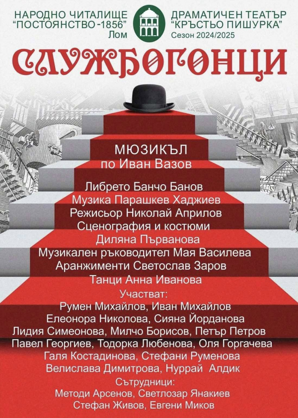 Кулминацията на фестивалния ден ще бъде в 19:00 часа с мюзикъла „Службогонци“ по Иван Вазов, представен от Драматичен театър „Кръстьо Пишурка“ към НЧ „Постоянство– 1856“  ( гр. Лом), с режисьор Николай Априлов. Комедията, макар и написана преди години, звучи изключително актуално със своите теми за стремежа към власт, пари и обществено положение. Динамичното действие, ярките персонажи и комичните ситуации гарантират силен интерес и емоционален отклик от публиката.