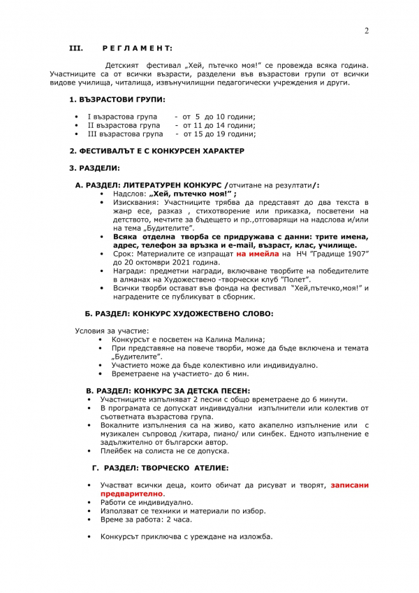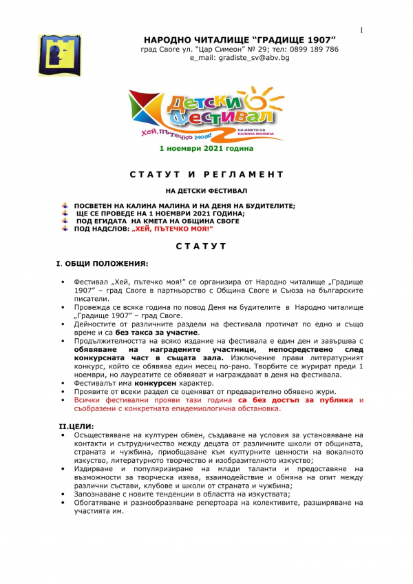 Ето и пълния регламент и статус на фестивала:
