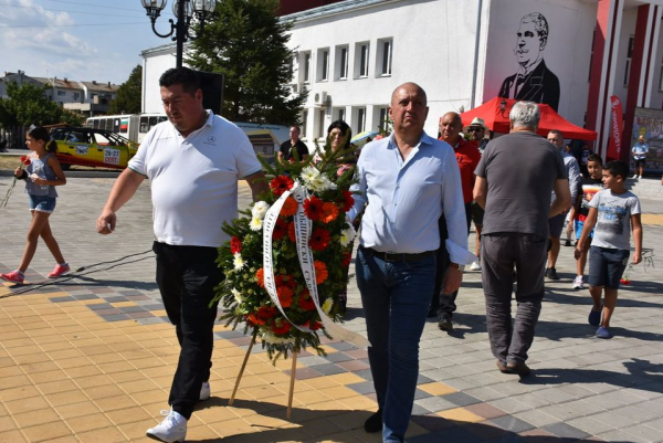В 14:30 ч. официалните лица поднесоха венци и цветя пред паметника на площад Иван Вазов. Джорджия и Ан Чи от Дневен център за работа с деца - Костинброд водеха тържествената програма.