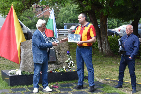 Петър Димитров награди Тодор Тодоров и му благодари за неговата добрина, сле което събралите се фенове на Могилката, поднесоха на венец и цветя.