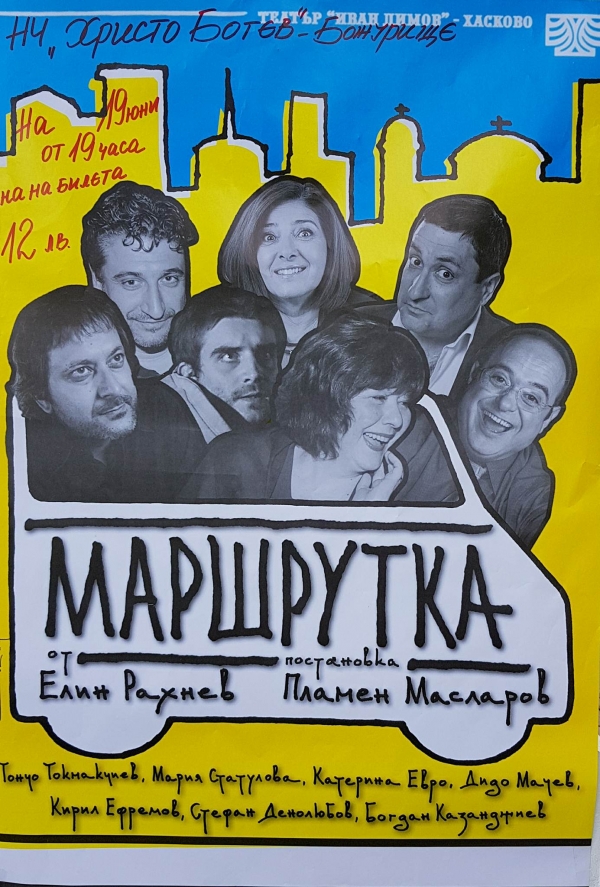НЧ „Христо Ботев“, град Божурище ще закрие театралния сезон с постановката „Маршрутка“ на хасковския драматично-куклен театър „Иван Димов“. Комедията от Елин Рахнев ще се играе на 19.06.2018 г. от 19:00 ч. на сцената на читалището.