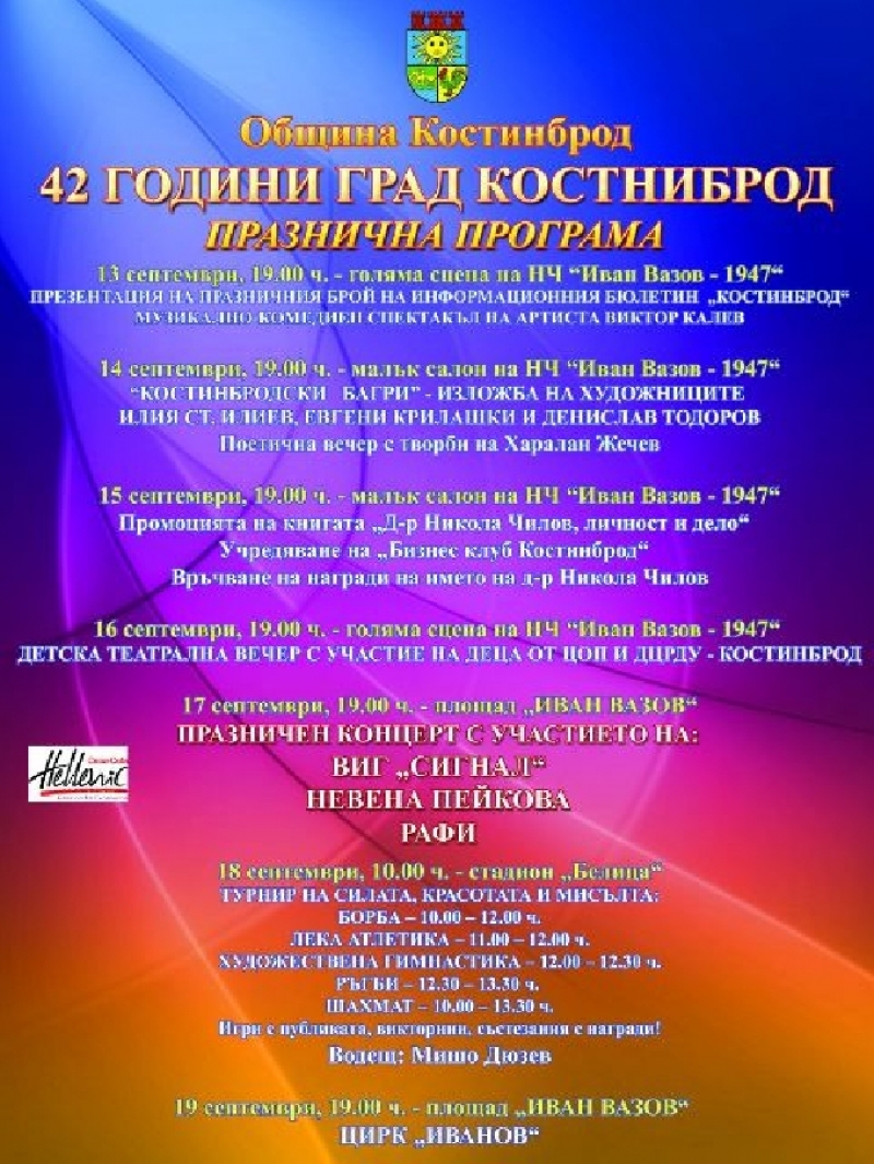 Пълната програма на тържествата по повод 42-години от обявяването на Костинброд за град можете да видите на сайта на общината.