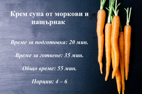 Представяме ви една рецепта за крем супа от пащърнак и моркови, подходяща за обяд или вечеря.