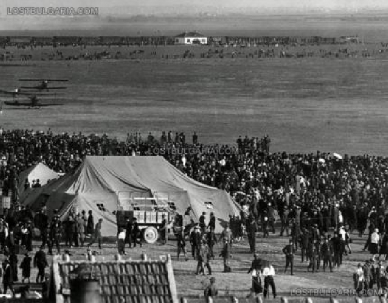 Обширното поле на град Божурище се окозва много подходящо за всички типове тогавашни самолети до появата на реактивните, а летището - невероятно перспективно. Историята на летището, с име на императорското цвете, е наситено със събития, заемащи място в историята на града, българската авиация и на страната въобще. Селището започва да се развива и нараства благодарение на аерогарата, докато не се подписва Ньойския договор. Според него „Българските бойни машини трябва да бъдат унищожени чрез нарязване с оксижен, насичане с брадви, залети с бензин и подпалени.“ „Железните“ мъже с опърлени от слънцето и вятъра лица, откарват машините си в „гробището“, откъдето никога няма да излетят.