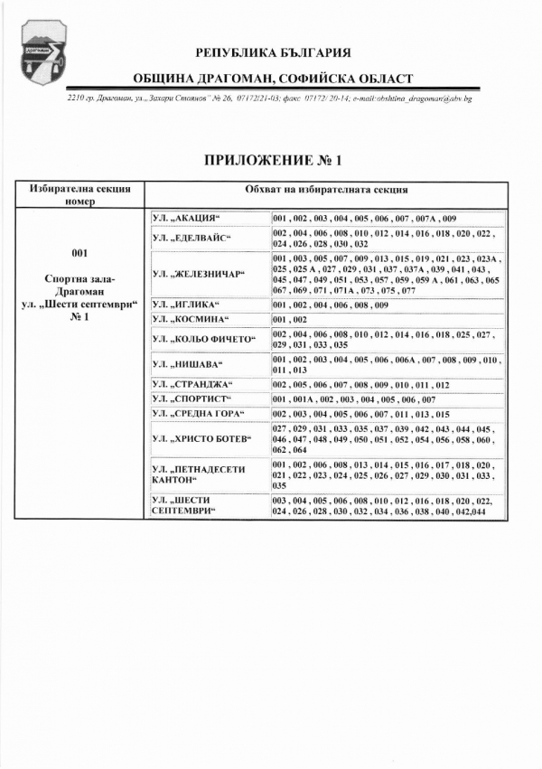 Община Драгоман обяви секциите за гласуване на предстоящите избори за Народно събрание