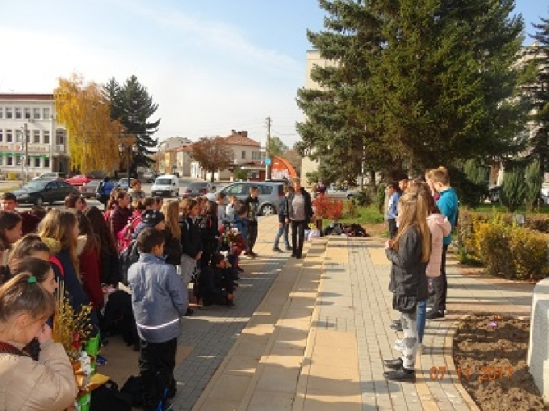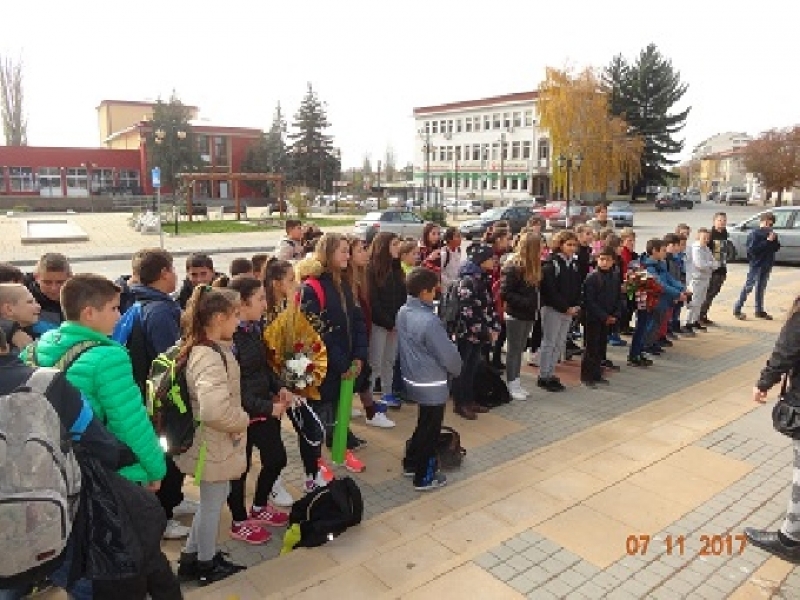 С цветя и стихове учениците от шести „б“ клас на СУ ”Св. Св. Кирил и Методий” почетоха героите от битката при Сливница по време на Сръбско-българската война през 1885 година.