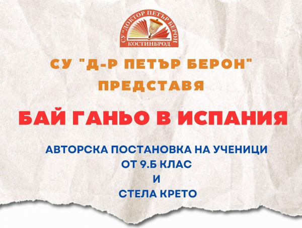 Постановката е дело на учениците от 9.б клас на СУ „Д-р Петър Берон“ и е авторска интерпретация на класическата българска литература.