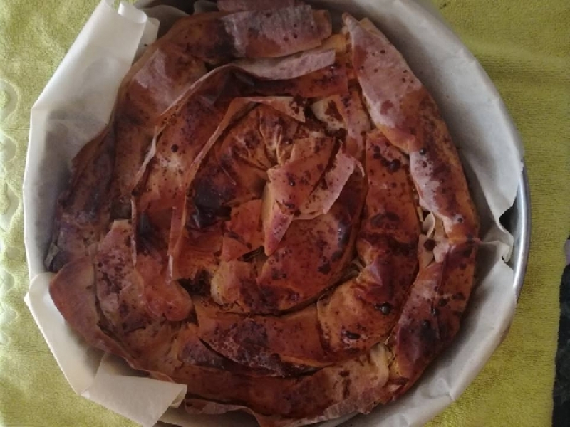 Всяка кора се навива на руло и се подрежда в тава. Най- добре застлана с хартия.