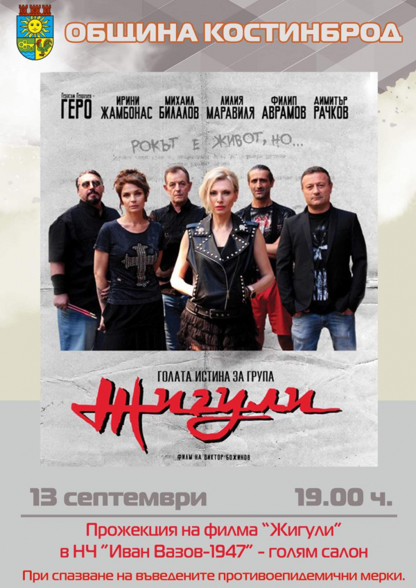 Поредното кино ще зарадва почитателите на филмовото изкуство в община Костинброд. На 13 септември, в големия салон на НЧ „Иван Вазов-1947“ ще се състои прожекцията на хитовия българския филм „Голата истина за група Жигули”. Началото на прожекцията е в 19:00 ч.