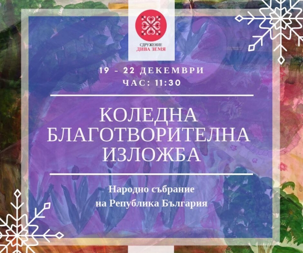 В навечерието на предстоящите празници сдружение „Дива земя” организира благотворителна коледна изложба. Експозицията ще бъде открита на 19 декември 2018 г. от 11:30 ч., в сградата на Народното събрание.