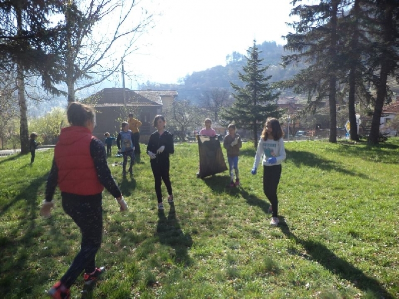 Едно почистените места бе двора на училището. Заедно, ученици и учители, събираха от тревните площи учебното заведение различни отпадъци, за да се превърне мястото в по-приятно и приветливо за всички.