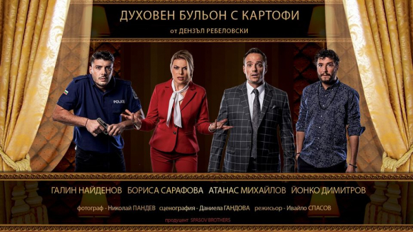 Пиесата „Духовен бульон с картофи“ е съвременна сатира, осмиваща духовния разпад на обществото, показвайки истинското лице на бюрокрацията.