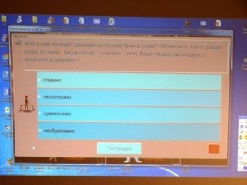 На 20 и 21 април в сградата на НЧ “Христо Ботев 1934” град Божурище се проведе представяне на компютърна игра по български език и литература за седмокласниците от СУ „Летец Христо Топракчиев”. Играта е създадена от учениците от клуба по по извънкласни занимания - "Забавна компютърна академия"с ръководител Ася Венелинова по проекта с МОН "Твоят час"- оперативна програма "Наука и образование за интелектуален растеж". Те създадоха интерактивна програма, благодарение на знанията си по информатика, информационни технологии и упорития си труд. Играта е със състезателен характер и се отличава от традиционното решаване на тестове.  Програмата има за цел да предостави на учениците забавна и полезна подготовка за предстоящото национално външно оценяване по български  език и  литература.