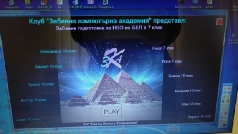 На представянето на компютърната игра присъстваха класните ръководители на състезаващите се седмокласници, както и директорът и заместник-директорът на СУ" Летец Христо Топракчиев" - Мая Карамфилова и Теодора Танева.  Учениците бяха разделени на два отбора - отбор Рамзес и отбор Дарий. Редувайки се, те излизаха на интерактивната дъска и проверяваха знанията си по български език и литература, а при верен отговор отваряха парче от пъзела, с чиято помощ  се доближаваха до победата. При грешен отговор те получаваха сведения за верния. Борбата за победата беше оспорвана, а децата се забавляваха. Компютърната игра по български език и литература може да бъде намерена на сайта на училище СУ”Летец Христо Топракчиев”от всички, които искат да проверят знанията си.