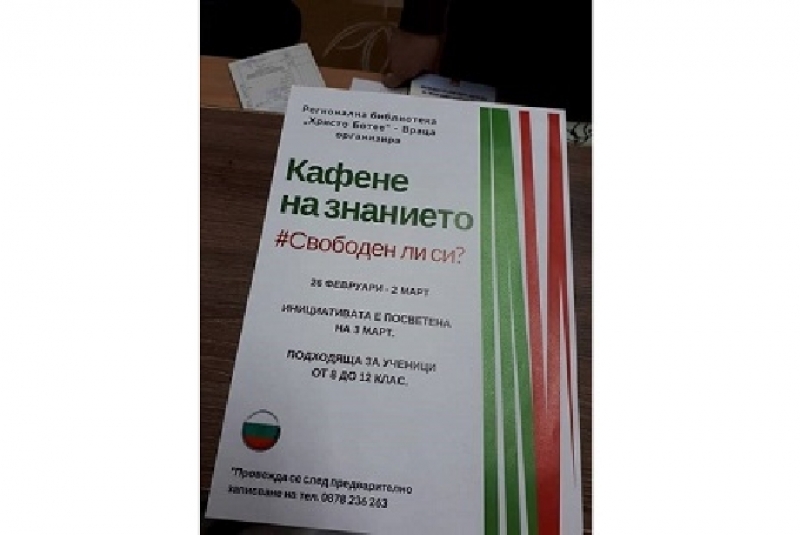 За втора поредна година регионална библиотека „Христо Ботев” Враца, организира „Кафе на знанието#Свободен ли си?”. Събитието бе открито на 26 февруари и ще продължи до 2 март. Инициативата е посветена на националния празник  Трети март - Ден на Освобождението на България от османско владичество.