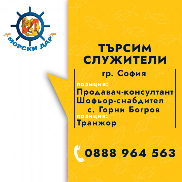 Специализираната компания за внос, дистрибуция и търговия с риба и рибни продукти – „Морски дар 09“ ЕООД обявява свободни работни позиции за длъжностите: