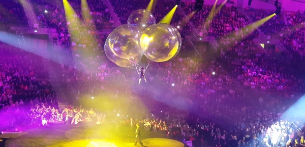 Началото на програмата бе като актьор на премиера - осмели се да излезе на сцената едва петнайсет минути след регламентираното откриване. Чухме Валс №2 на Андре Рийо в комбинация впечатляващата акробатичност и интересна хореография на Емили Кис - жената полилей.