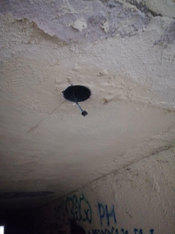 Поставеното чисто ново осветление от енергоспестяващи лампи на стълбите и по целия подлез е откраднато, ел. инсталацията, която захранва лампите е откъсната.