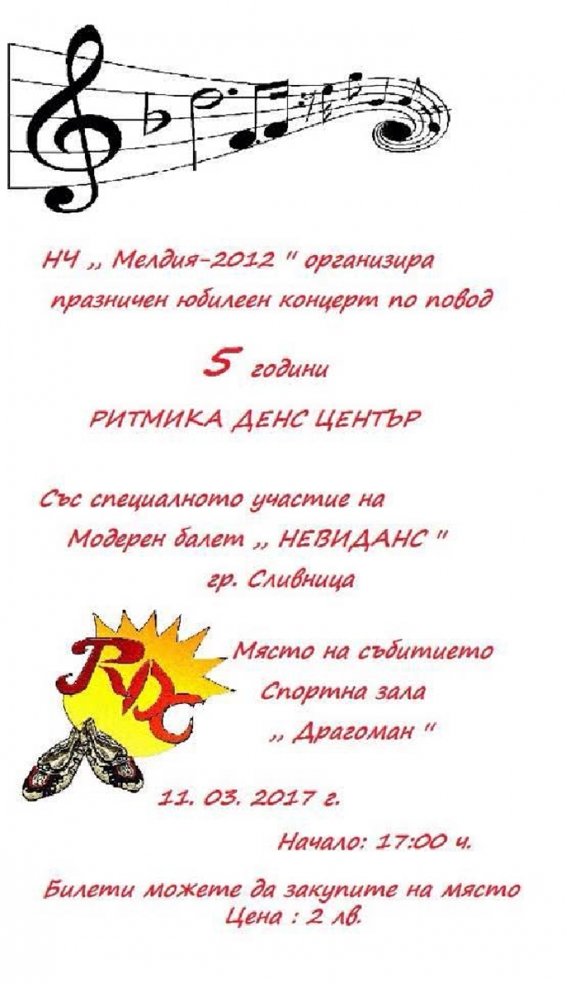 С празничен концерт "Ритмика денс център", град Драгоман, ще отбележи своя 5 годишен юбилей.