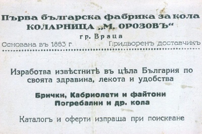 През 1883 г. е основана първата фабрика за коли, а неин създател е кой мислите - врачанинът Орозов. От тук нататък той прави всичко възможно, за да отговори на нуждите на времето. Първоначално привлича чужди майстори, добре запознати с работата, и забележете, плаща им 5 пъти по висока от обичайната заплата. Посвещава се на идеята да разчупи еднообразието на традиционните волска кола и магарешка каручка, като неуморно се опитва да ги модернизира и дори да ги премахне като основен начин за траспорт. УСПЯВА, въвеждайкдайки бричката, кабриолета и най-вече файтона, широкоизползван по това време в Европа.