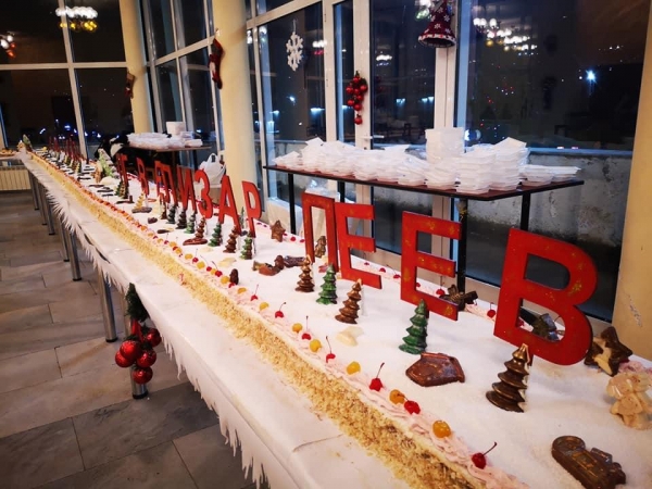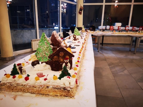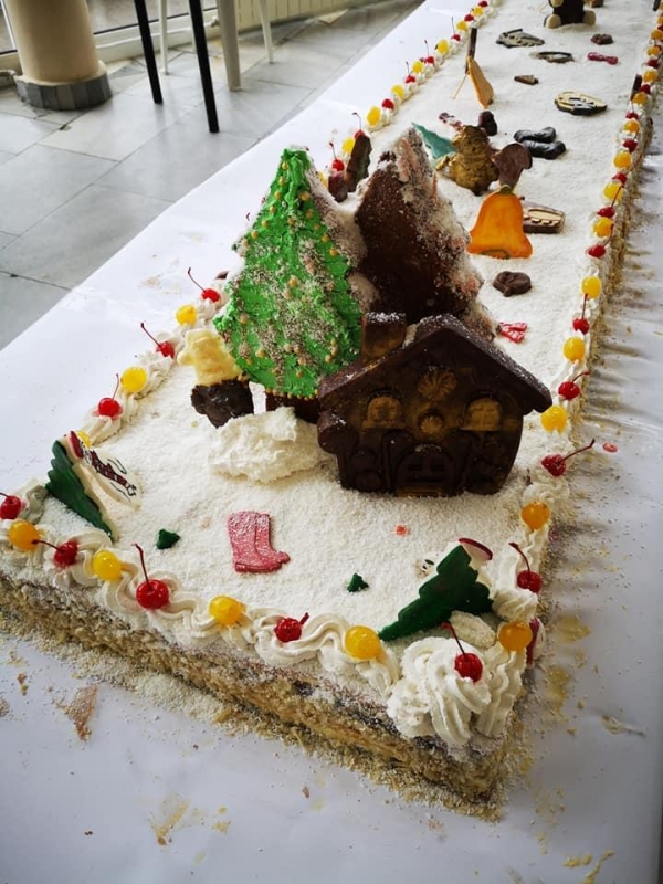 В навечерието на коледните и новогодишните празници ученици и учители от Професионална гимназия “Велизар Пеев“ приготвиха коледна торта за децата и гражданите на Своге.