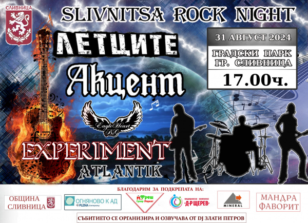 За поредна година, Сливница ще бъде домакин на „SLIVNITSA ROCK NIGHT”. Рок-маратонът се проведе на 31 август в градския парк в града и ще събере почитателите на твърдата музика в Сливница и региона. Началния час на събитието е 17.00 ч. Програмата включва изпълнения на Летците, Акцент, Experiment, Atlantik и др. Събитието се организира и озвучава от DJ Злати Петров.