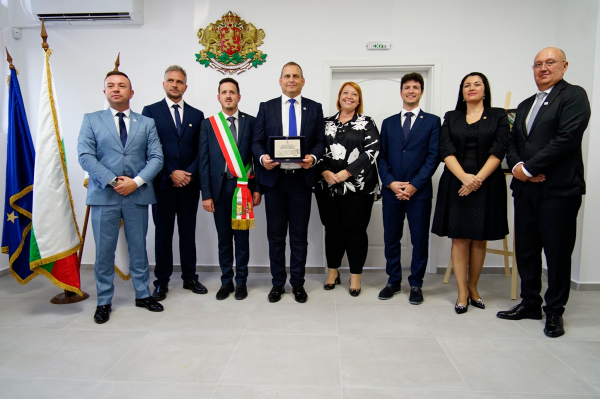 За финал на тържествената сесия, гостите от побратимената ни община Салеми, регион Сицилия, Република Италия, поднесоха своята благодарност за топлото посрещане и взаимствеността по време на престоя им, като удостоиха ръководството на община Костинброд с каменна плоча, с пожелание за здраве, устойчивост, просперитет и множество съвместни бъдещи проекти.
