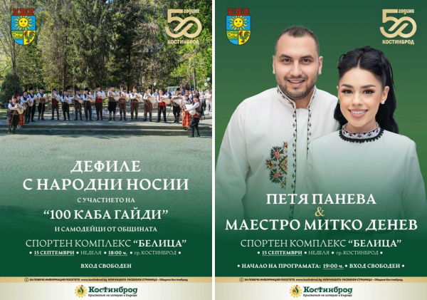 На 17 септември, Костинброд чества 50 години от обявяването си за град. Юбилеят на града ще бъде отбелязан с богата и разнообразна програма, организирана от Община Костинброд. Жители и гости на Костинброд ще имат възможността да се насладят на множество събития и забавления. Ето и част от празничната програма: