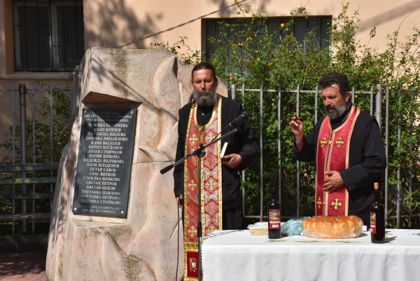 Заупокойна молитва пред монумента, издигнат в памет на осемнайсетте загинали при експлозията, отслужиха отец Серафим и отец Николай.