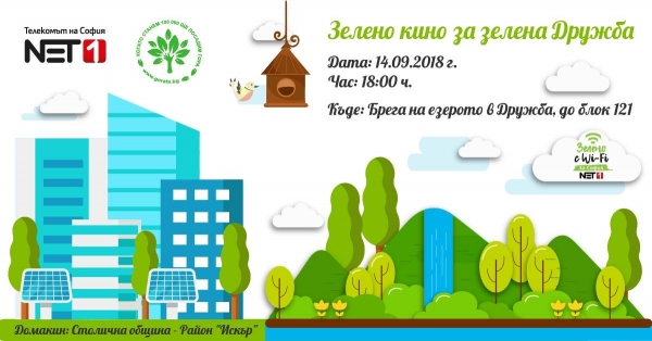 Под надслов „Зелено кино за зелена Дружба“ ще премине специалното събитие, което софийския телекомуникационен оператор NET 1 организира за жителите и гостите на столичния квартал Дружба. Зелената киновечер ще се проведе на 14 септември с начален час 18:00 ч., на брега на Дружбенското езеро, до блок 121. Гвоздеят на вечерта ще бъде прожекцията на филм, част от кампанията на National Geographic – „Планета или пластмаса?" с участието на азиатската звезда Джеки Чан. Входът за събитието е свободен!